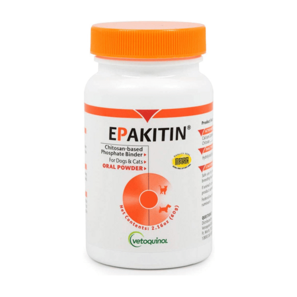 Epakitin es un aglutinante de fosfato a base de quitosano que ayuda a mantener el funcionamiento normal y la salud de los riñones en perros y gatos.
