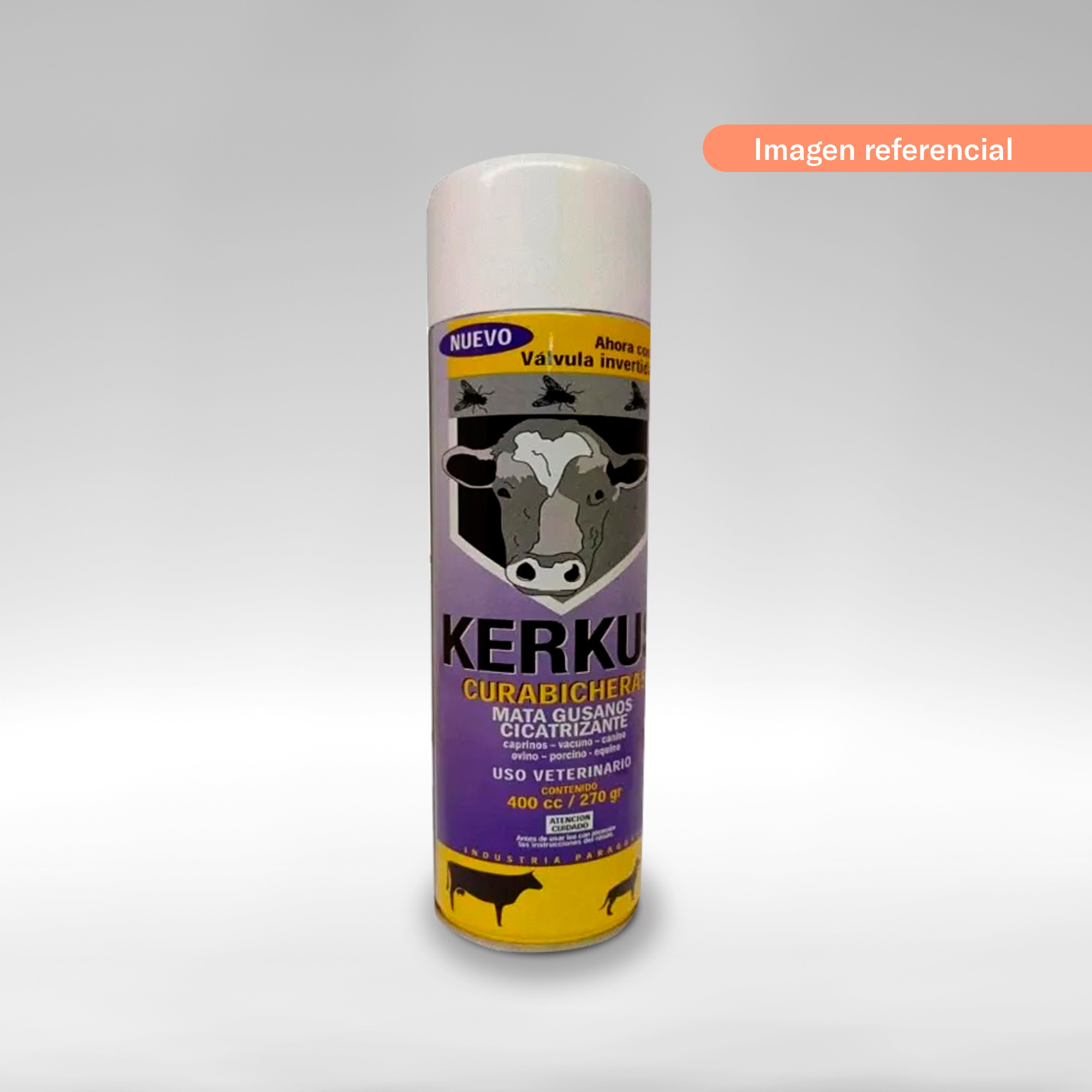 Indicaciones: Bovinos, equinos, caprinos, porcinos, ovinos y caninos. No felinos. Aplique Kerkus en aerosol a 15 cm. de la herida, cubriendo totalmente la misma y las áreas circundantes. Utilice como preventivo en heridas recientes y/o agusanadas, en la castración, descole, descorne, marcación, heridas quirúrgicas y en el ombligo del animal recién nacido.