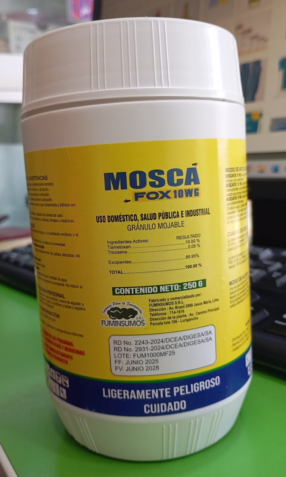 - 250g de Mosca Fox x 2L de agua para aspersión x 100m2.
